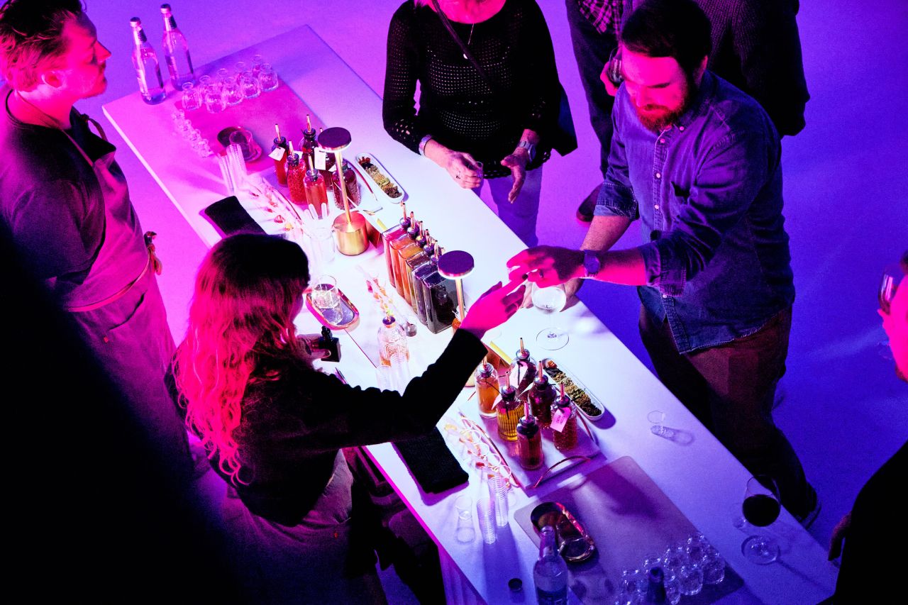 After dinner, attendees were guided to a hidden dessert room accessible only by a secret knock, reinforcing the exclusivity and theatricality of the event. Inside, guests received custom cocktails infused with the bitters they created earlier, completing the narrative loop. A wax-seal finishing station allowed each attendee to stamp and bottle their personalized creation to take home. The result was a networking experience engineered to feel cutting-edge, intimate, and entirely one-of-a-kind—an elevated evolution of the Embedded Exchange series.