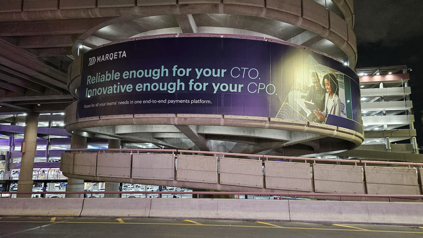 CONCEPT: For Money20/20 US—Marqeta’s most important annual conference—I led a full reinvention of our event marketing approach, shifting the company away from a traditional tradeshow booth model and toward a multi-touchpoint, high-impact experience aligned to our move up-market. Instead of competing on a crowded show floor, we built a curated journey for our most valuable accounts, starting the moment they landed in Las Vegas. This included custom multi-surface brand ads throughout LAS Airport and a bespoke sponsorship package with Money20/20 featuring elevator screen takeovers and floor-to-ceiling column wraps at the main show entrance, ensuring top-of-mind visibility even without a booth presence.